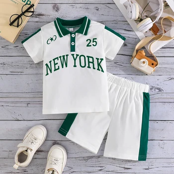 Children's Casual Clothing Summer Short Sleeve Letter Breathable 4-8 Years Boy's Two-Piece Set Kid's Clothing Sports Jerseys